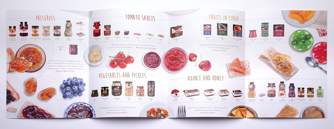 Realizamos este completo catálogo de productos para el Grupo Helios, una multinacional española del sector alimenticio. Tuvimos control absoluto de todas las partes creativas. Desde la realización de fotografías artísticas hasta el diseño de todo el catálogo que buscaba transmitir su buen hacer a través de sus productos.