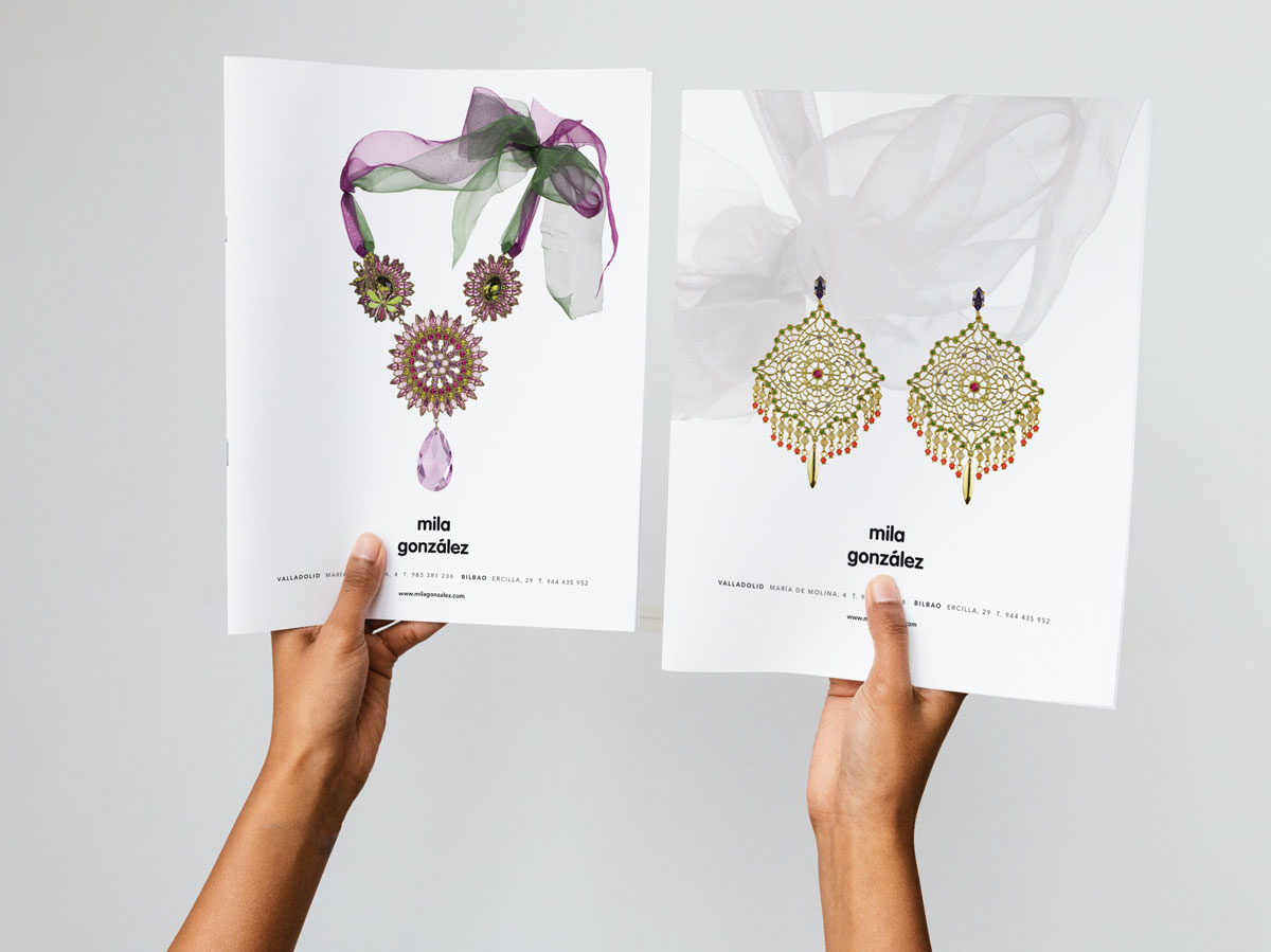 Realización de diferentes catálogos para la firma de joyería Mila González. Fotografías, diseño y maquetación. Blanco, minimalismo y, sobretodo, mucha elegancia.