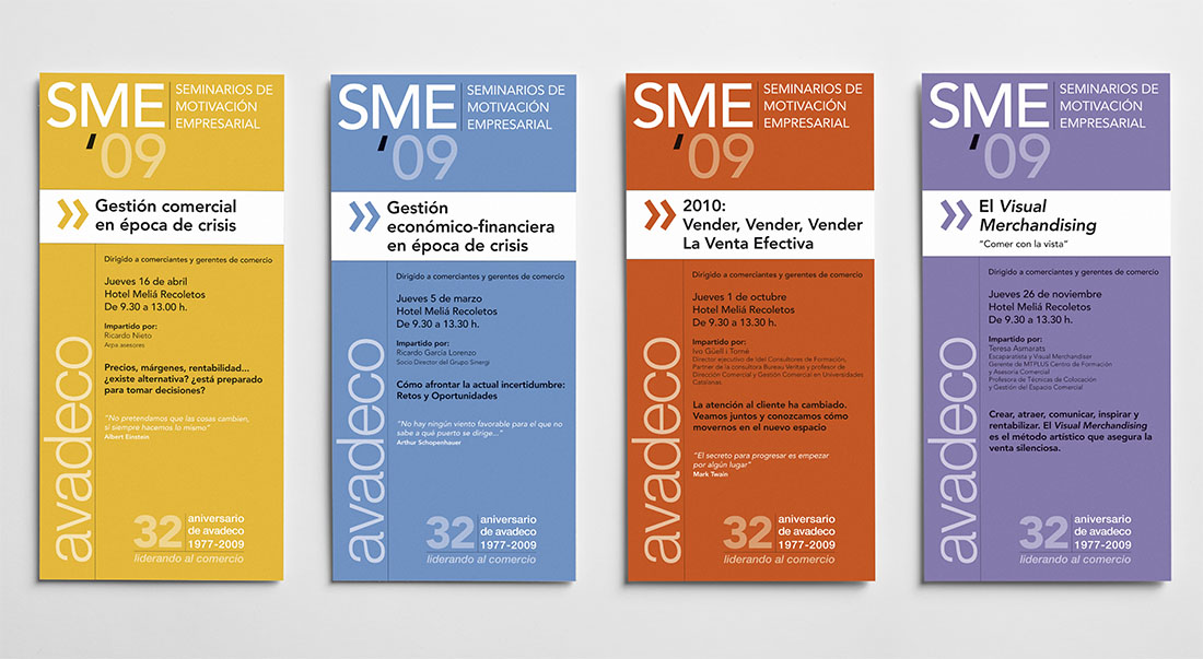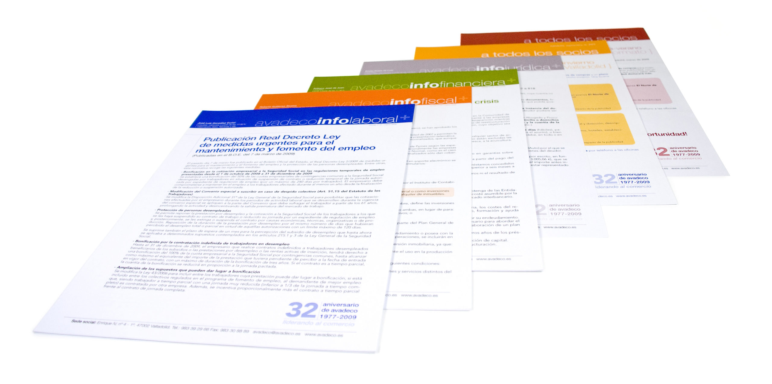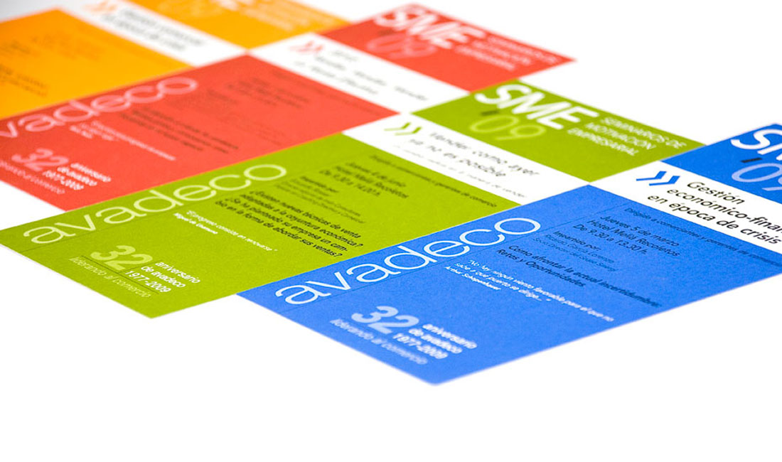 Uno de los pilares de AVADECO es la comunicación con sus socios mediante circulares, newsletter, redes sociales o su página web. Para ello hemos creado multitud de piezas gráficas que, a pesar del paso del tiempo, han evolucionado de una manera lógica y mantienen una coherencia.