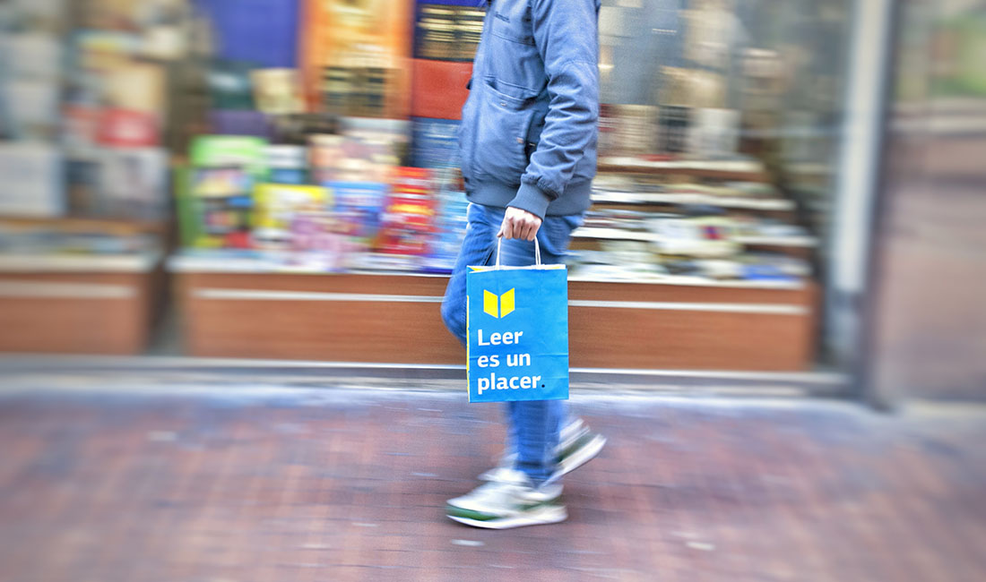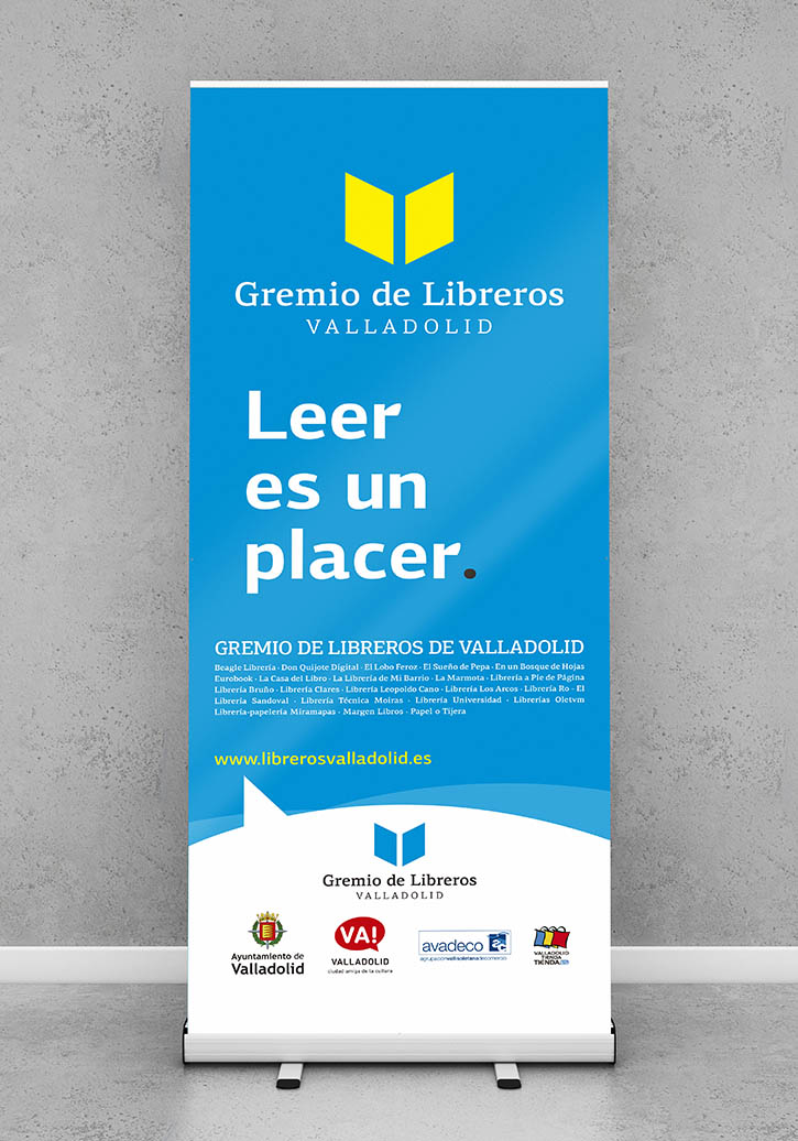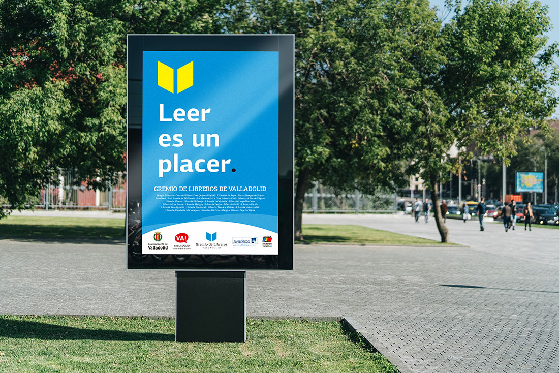 Tras renovar su imagen corporativa, el Gremio de Libreros quiso presentarse a la ciudad de una manera atractiva. Para ellos creamos el slogan «Leer es un placer», una manera velada de animar a la lectura y por lo tanto a comprar en las librerías del gremio.