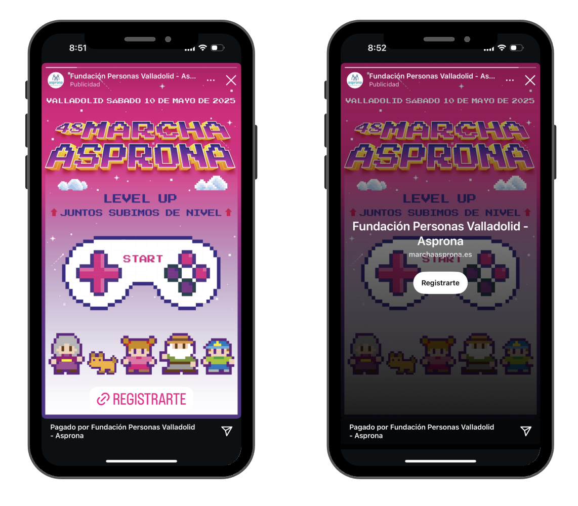 Todos los años contamos con un cartel y una camiseta para cada marcha, pero siempre surgen nuevas aplicaciones. En primer lugar tenemos que trasladar todo el concepto a la web, para poder activar las inscripciones online. Del mismo modo, creamos aplicaciones para redes que se destinan tanto al contenido orgánico como a campañas de pago en RRSS y otros canales digitales como Google Ads.