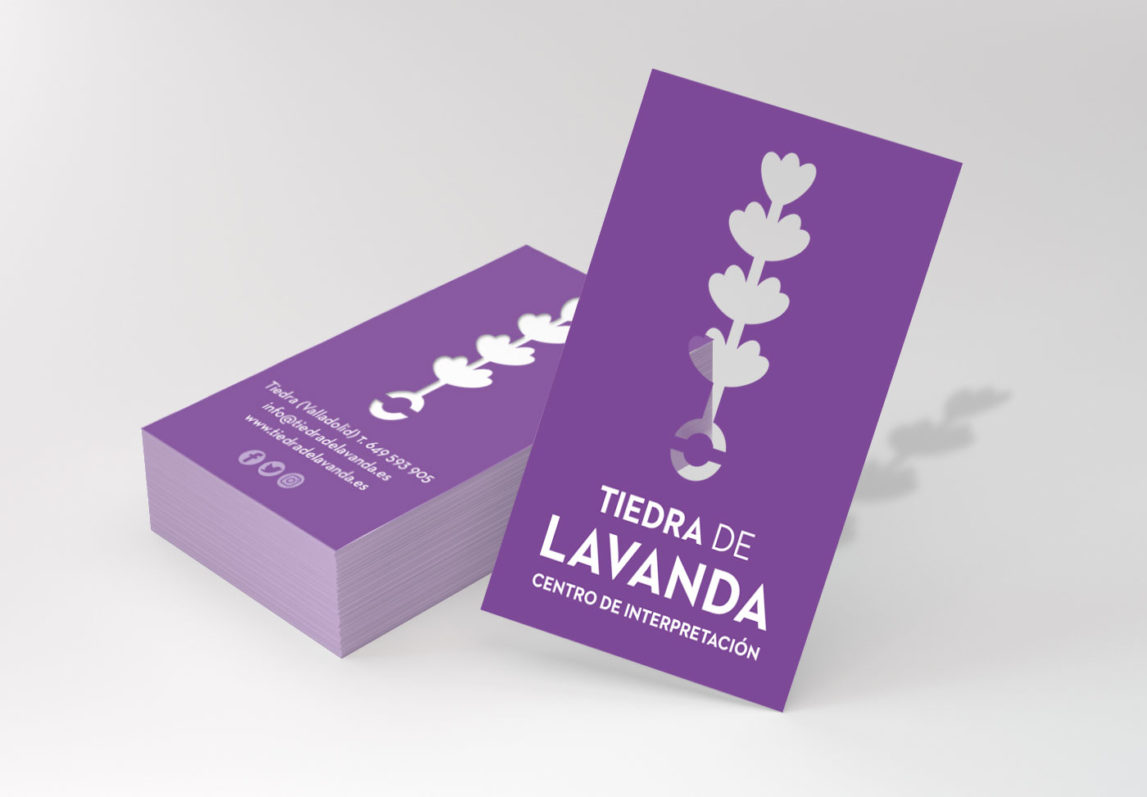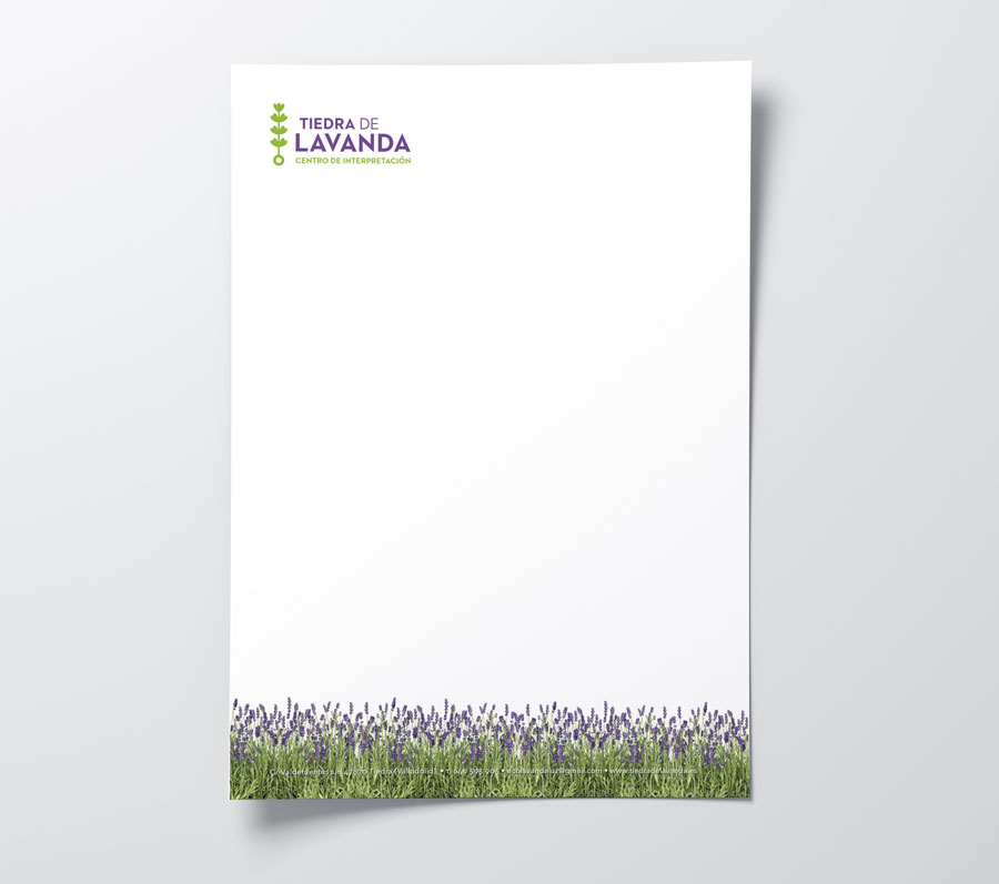 El imagotipo de Tiedra de Lavanda se compone de un símbolo que es una representación esquemática de la planta; esta crece a partir de un círculo que representa un punto, un lugar. La marca surge a partir del Centro de interpretación, punto de confluencia y a la vez espacio de difusión de todo lo relacionado con la lavanda.