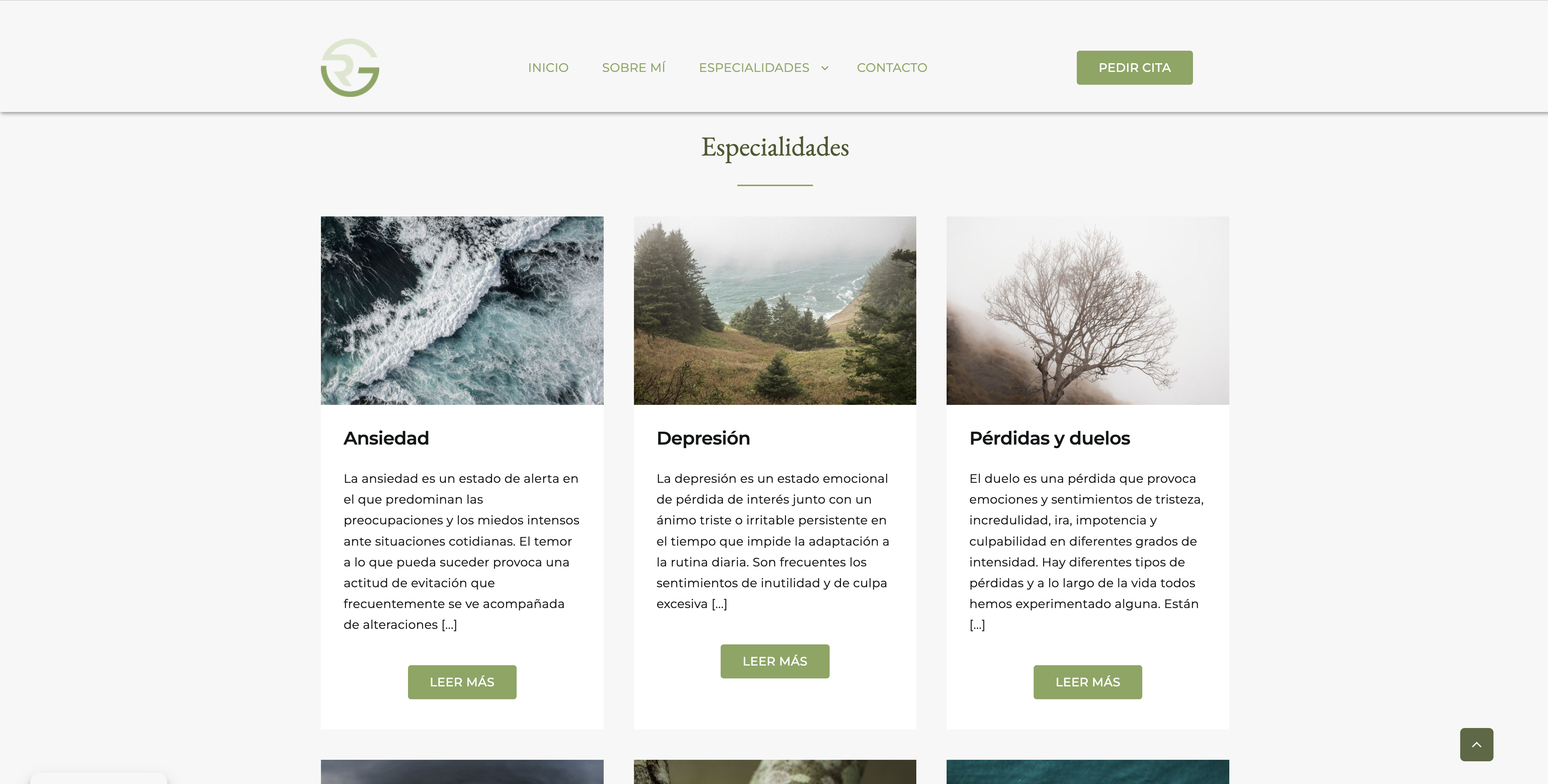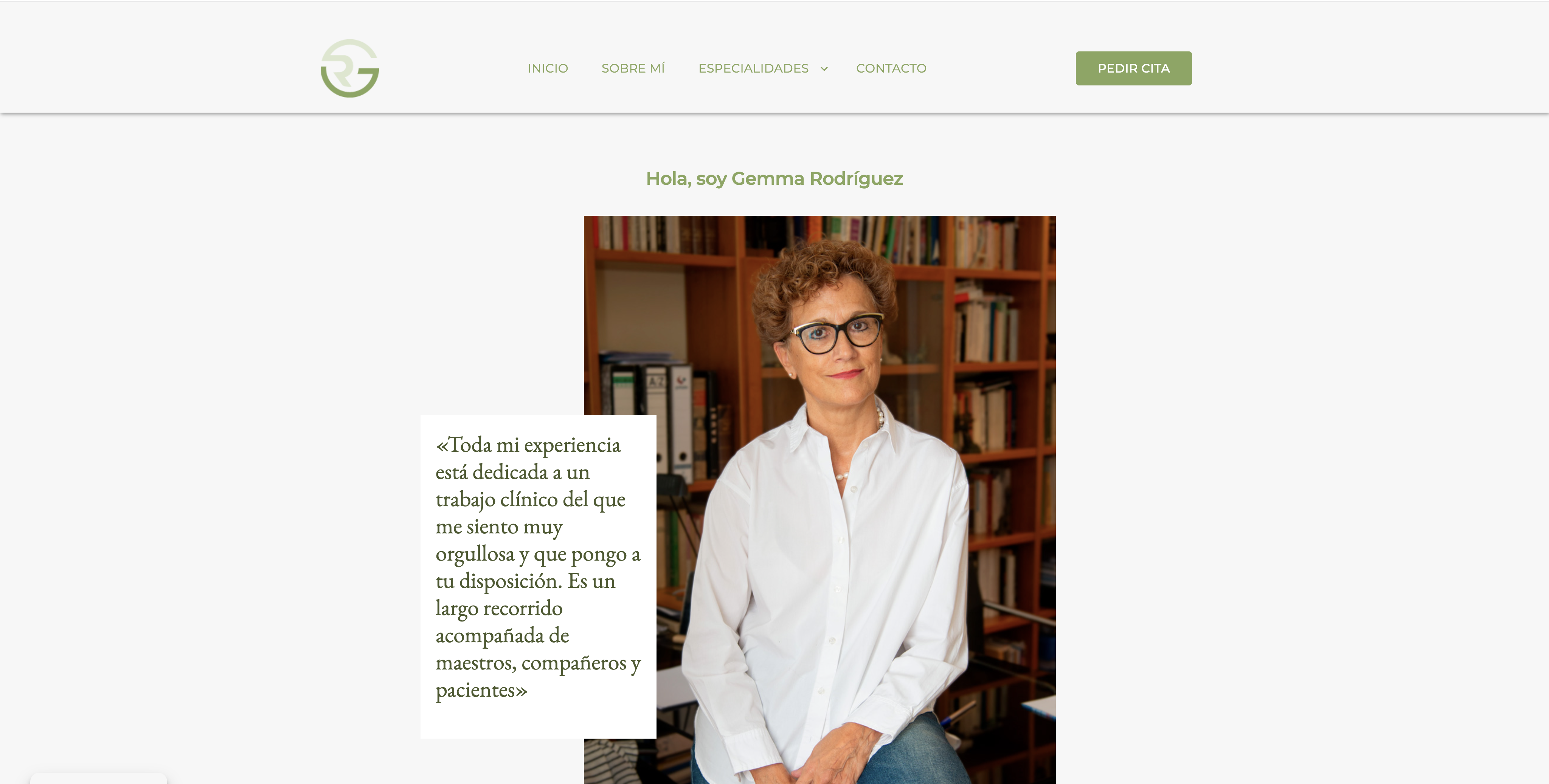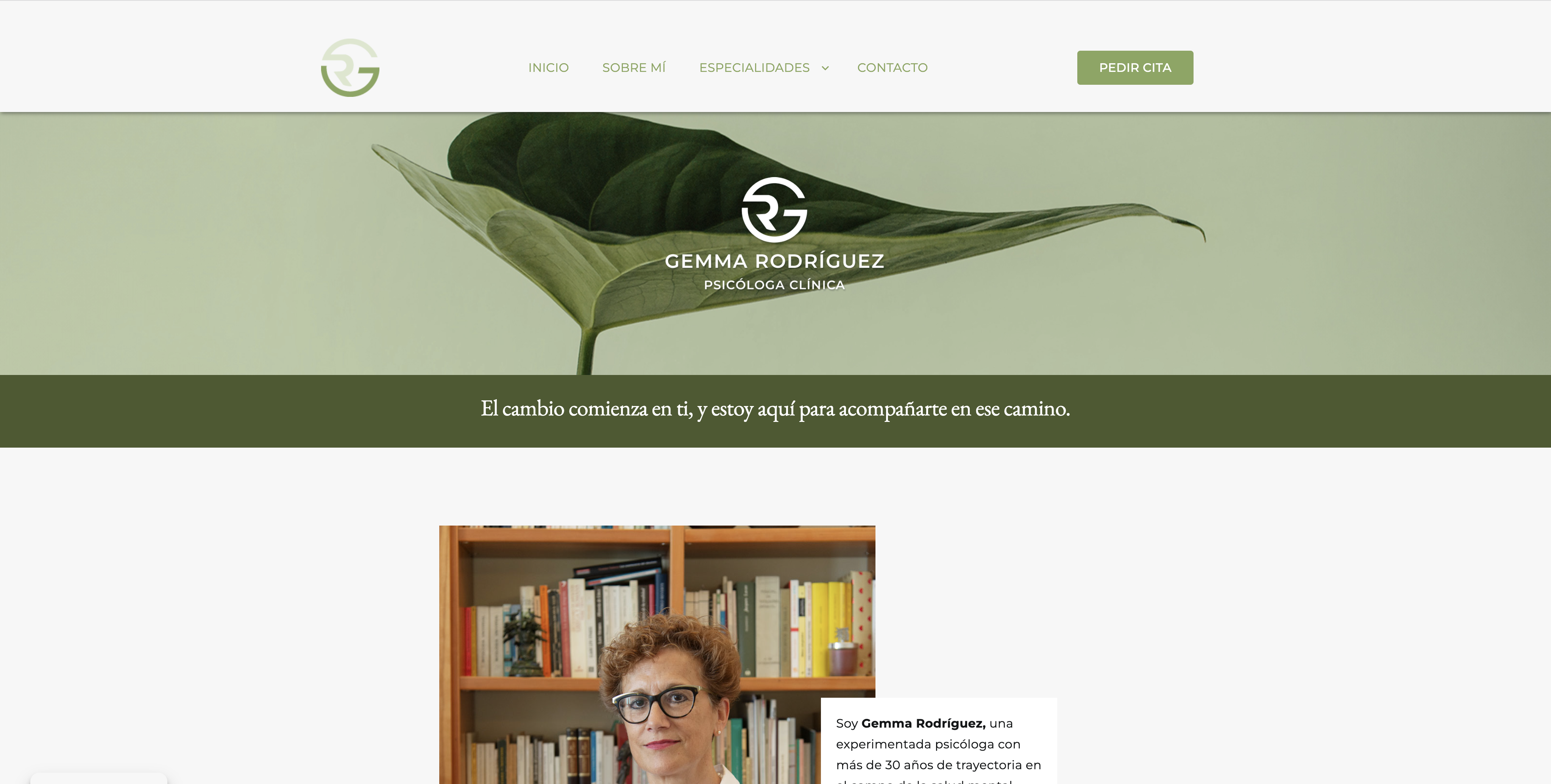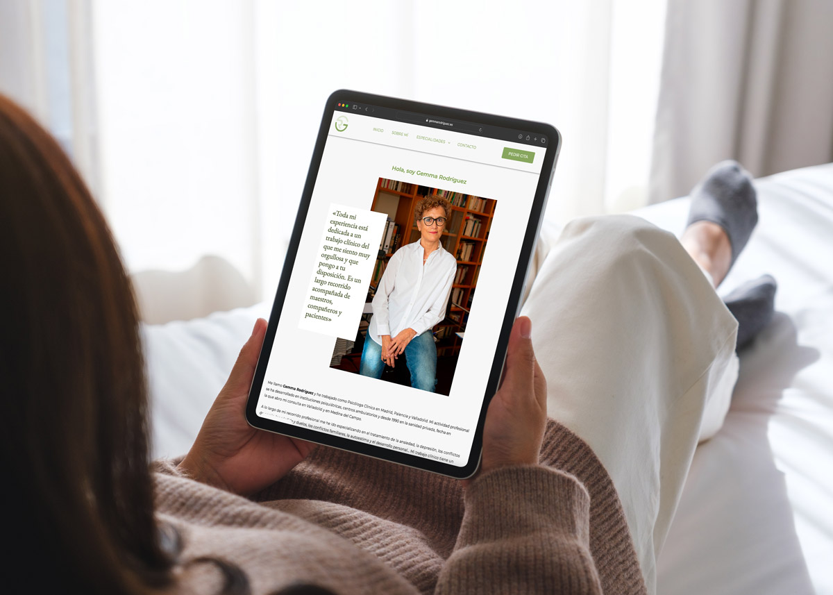 Es en caso de Gemma, psicóloga clínica, hemos creado una web relativamente sencilla que cuenta con tres partes esenciales. Una presentación, un desglose de sus especialidades y una pestaña de contacto. Además la web, te invita constantemente a contactar con ella o pedir cita, su objetivo principal.