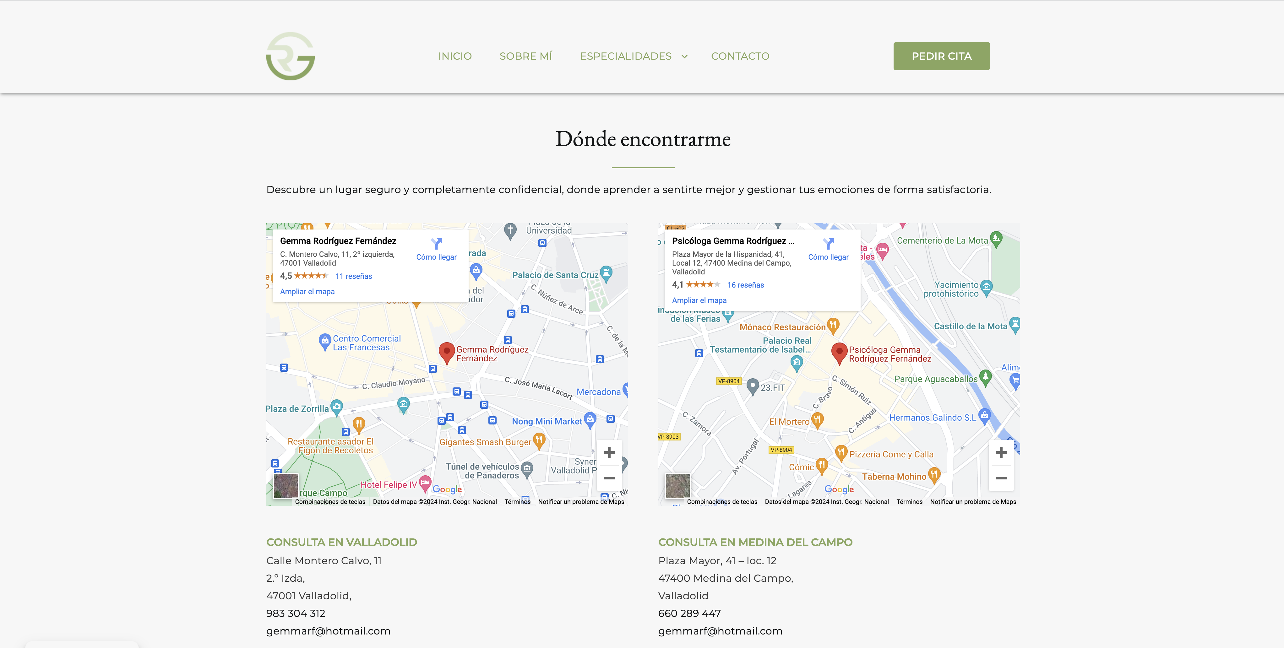 Gemma Rodríguez, psicóloga clínica instalada en Valladolid y en Medina del Campo, nos encargó realizar una web en la cual se pudieran presentar tanto ella como sus servicios así como pedir cita.
